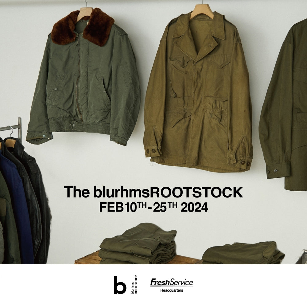 「The blurhmsROOTSTOCK」では、FreshServiceディレクター 南貴之が収集したミリタリーやワークを中心としたビンテージウェアに加え、時を超えて愛されるビンテージウェアへ敬意を表しつつも、現代的なシルエットや上質な素材を用いて再編集されるblurhms ROOTSTOCK(@blurhms_rootstock)のアイテムが一堂に会します。