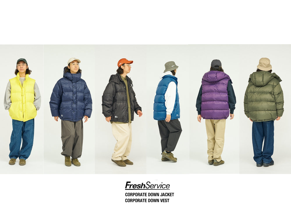 FreshServiceでは今や定番となっているCORPORATE EASY PANTSやCORPORATE CAPの商品名にも使われている”CORPORATE”に込められている意味、そして今回のダウンに込められた思いをディレクターである南 貴之に聞きました。